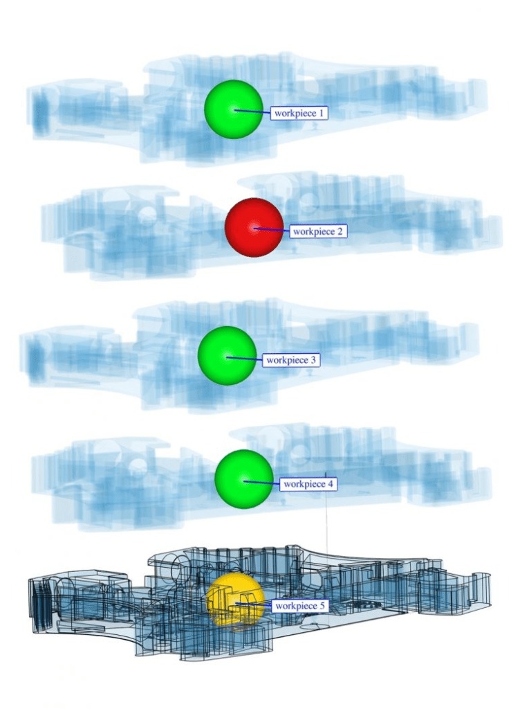 Đối với nhóm phôi gia công, một màn hình tổng quan xuất hiện trong đồ họa 3D, với mô hình CAD của vật cố định nếu muốn, cho phép gán nhanh chóng và dễ dàng các phôi gia công vượt quá dung sai cho vị trí của chúng trong vật cố định. Các phần tử phôi hiển thị trạng thái phôi, “tốt”, “xấu” hoặc “trên mức giới hạn”, được xác định từ tất cả các thuộc tính hình học cụ thể. Trực quan hóa có dạng một quả cầu màu, ví dụ như màu xanh lục hoặc đỏ, tùy thuộc vào các giá trị dung sai được xác định.