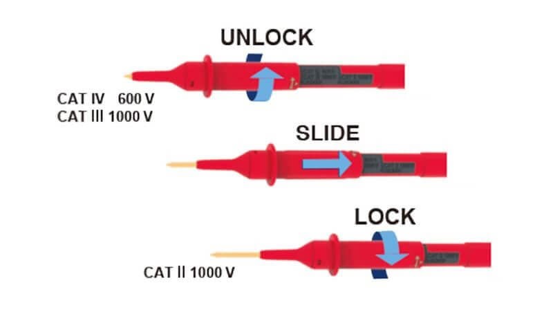 Que đo L9300 gắn thêm ống bọc tích hợp mang thêm sự thuận tiện và an toàn. Thiết kế cho phép bạn chuyển đổi phân loại phép đo một cách đơn giản bằng việc trượt đầu bảo vệ của que đo. Bạn không còn phải lo lắng sẽ bị rơi nắp!